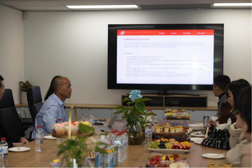 COO Tom gave the guests a detailed introduction to H&S Global's development history, business types, and key brands.