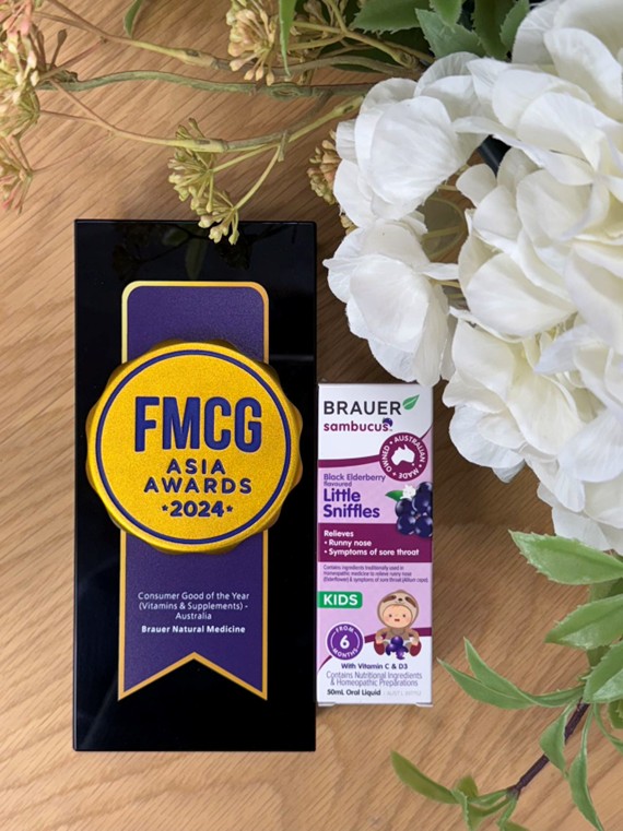 H&S representative receives the award on stage at the FMCG Asia Awards 2024 ceremony Brauer Wins Consumer Good of the Year (Vitamins & Supplements) – Australia Brauer was awarded Consumer Good of the Year (Vitamins & Supplements) – Australia at the FMCG Asia Awards 2024 for its standout children’s product, Brauer Sambucus Little Sniffles. Tailored for babies and children from six months old, this gentle immune support formula blends elderberry extract (Sambucus nigra), Allium Cepa, and vitamins C and D3 to help ease cold symptoms, strengthen immunity, and promote overall health. Since its launch in April 2023, Little Sniffles has sold more than 13,000 units, becoming a trusted choice for families during cold and flu season. The award recognises Brauer’s 95-year legacy and continued leadership in natural health products for young children.